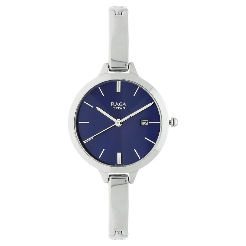 Titan Raga Viva Blue Dial Analog With Date Metal Strap Watch For Women