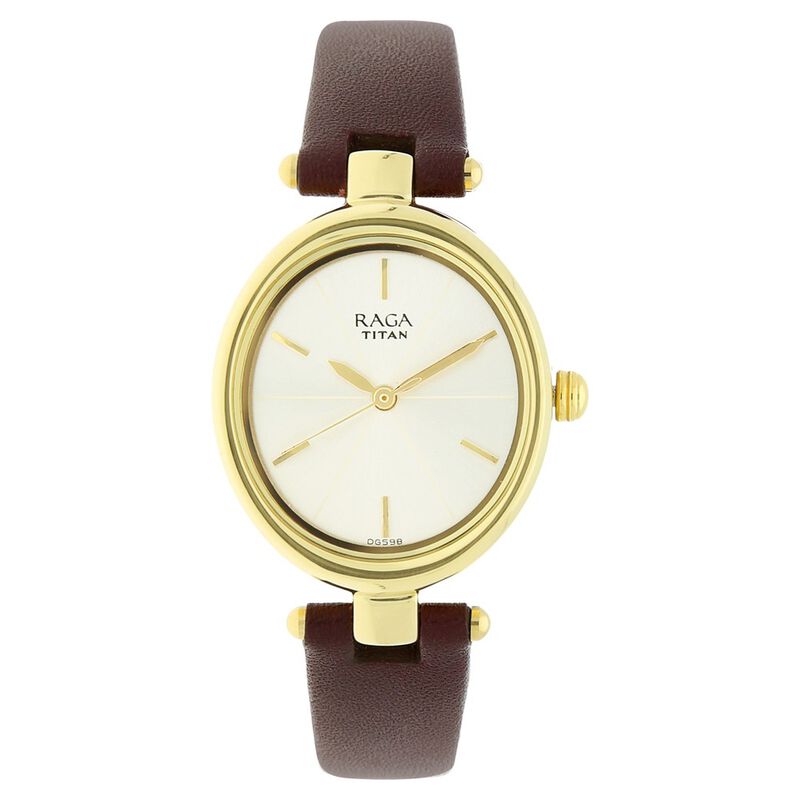 Titan Raga Viva Champagne Dial Analog Leather Strap Watch For Women