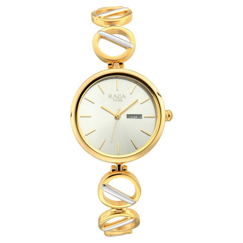 Titan Raga Viva Champagne Dial Analog Stainless Steel Strap Watch For Women