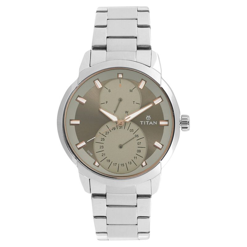 Titan Quartz Multifunction Grey Dial Stainless Steel Strap Watch For Men