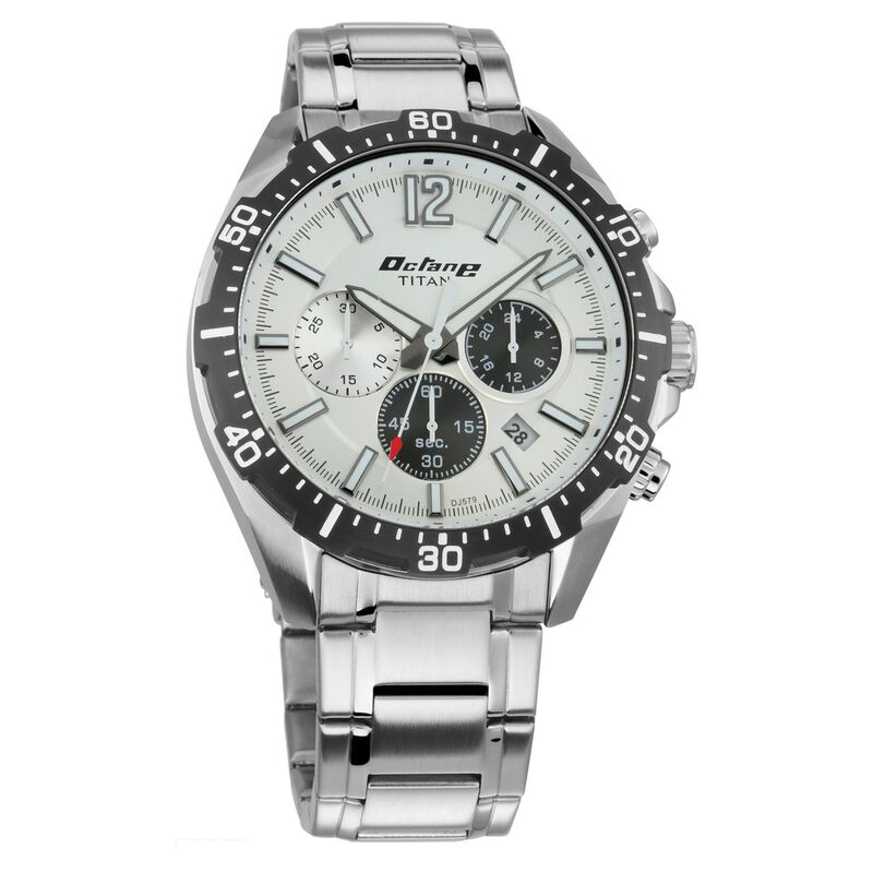 Titan Quartz Chronograph Silver Dial Stainless Steel Strap Watch For Men
