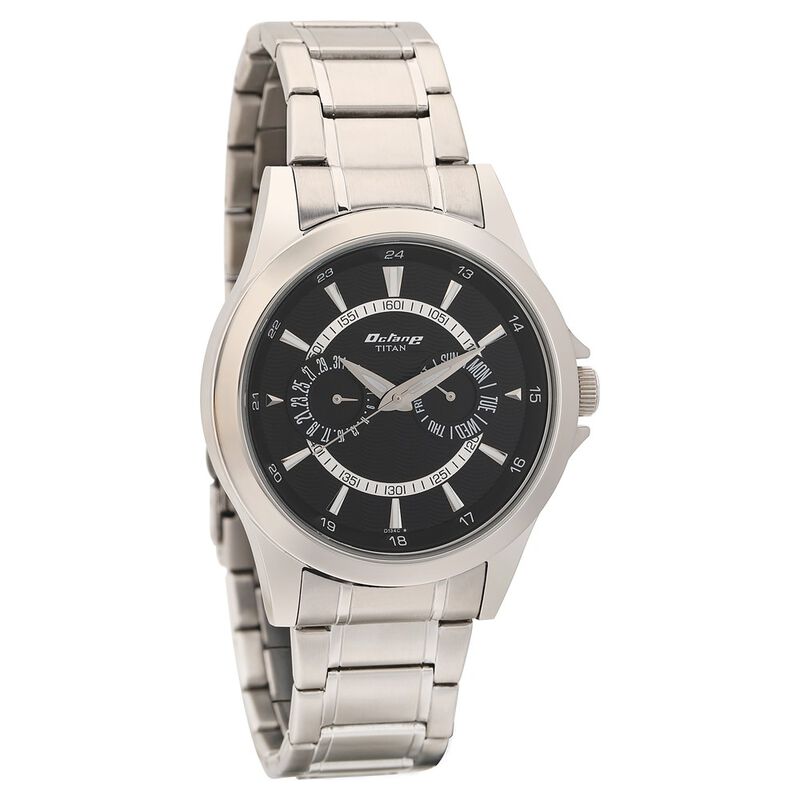 Titan Quartz Multifunction Black Dial Stainless Steel Strap Watch For Men