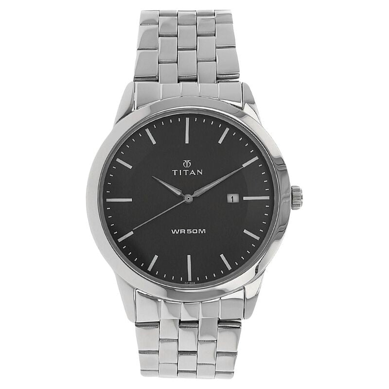 Titan Quartz Analog With Date Black Dial Stainless Steel Strap Watch For Men
