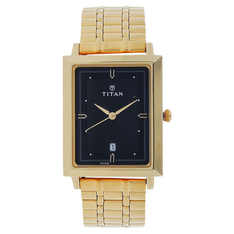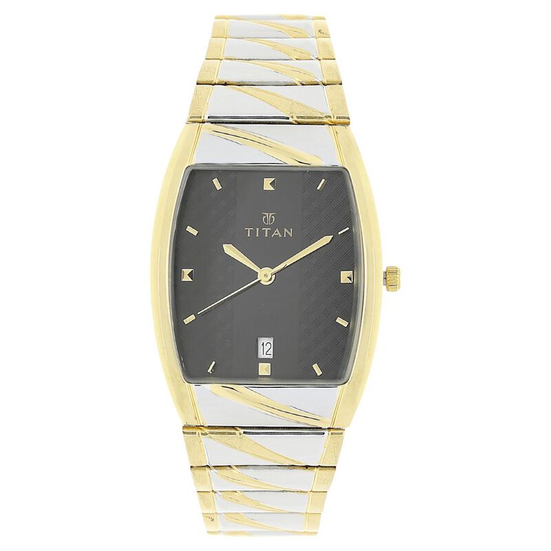 Titan Quartz Analog With Date Black Dial Metal Strap Watch For Men