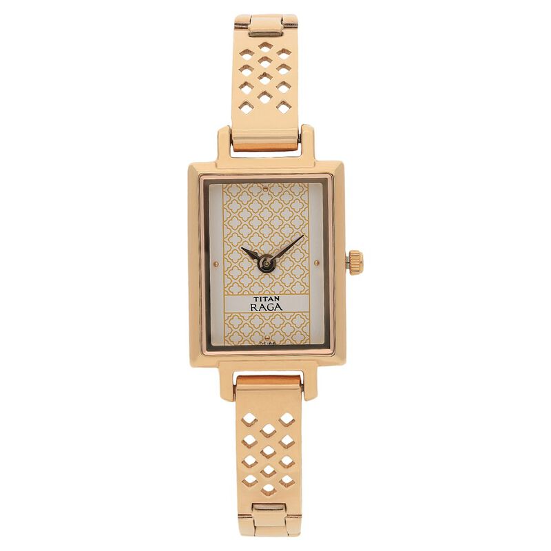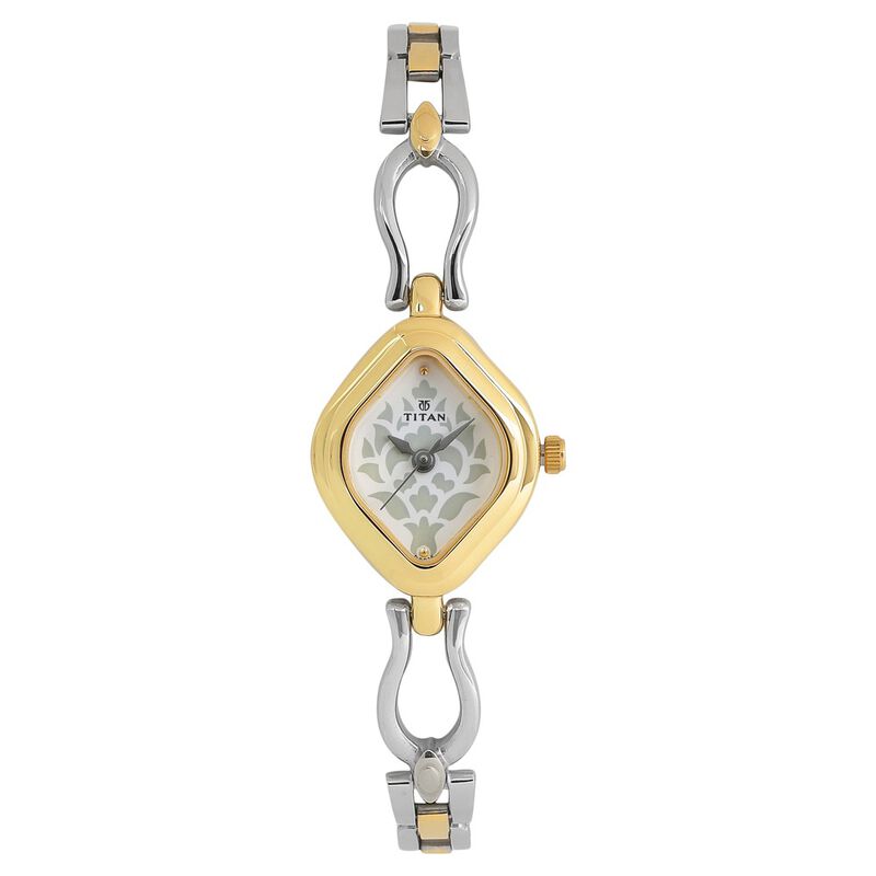 Titan Quartz Analog White Dial Metal Strap Watch For Women