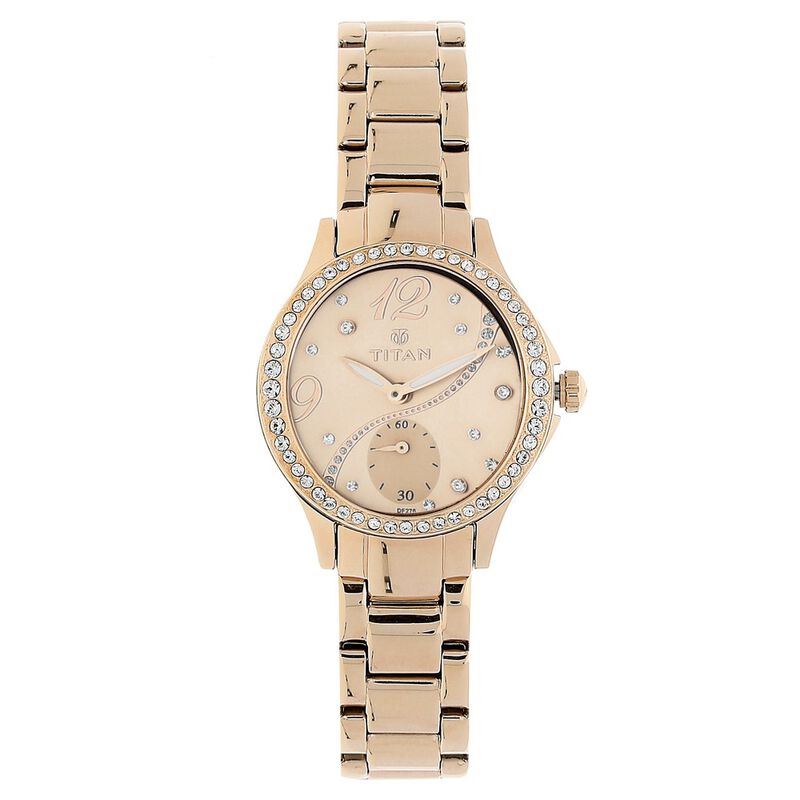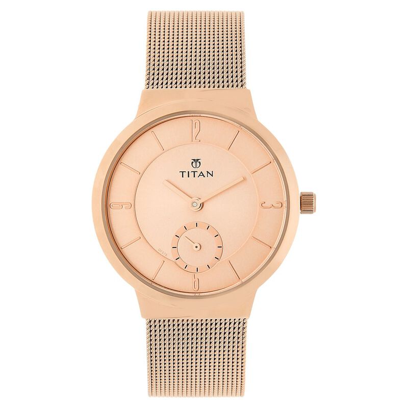 Titan Quartz Analog Rose Gold Dial Stainless Steel Strap Watch For Women