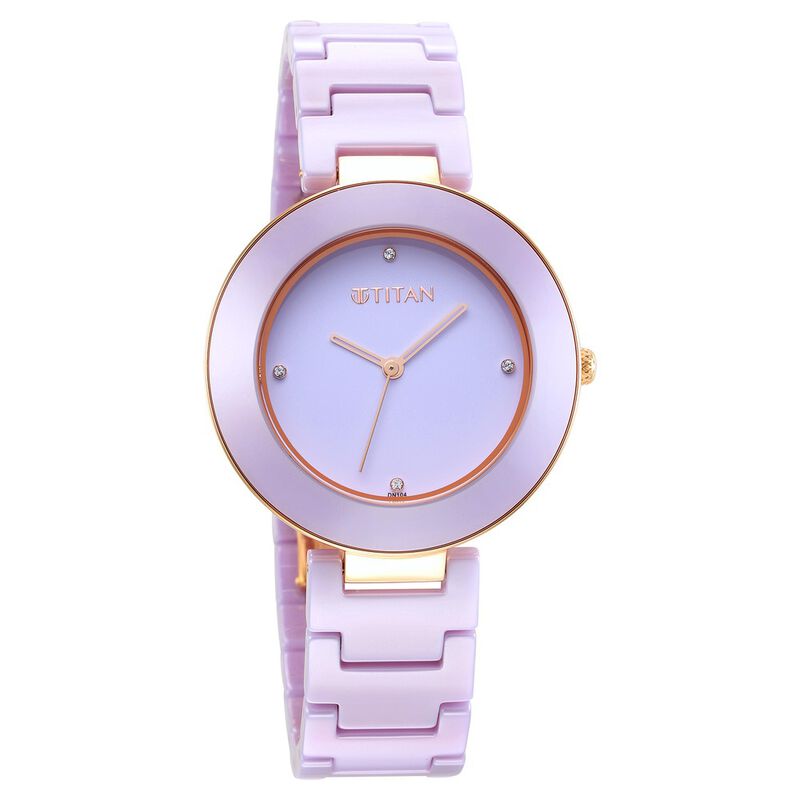 Titan Purple Ceramics Purple Dial Analog Ceramic Strap Watch For Women