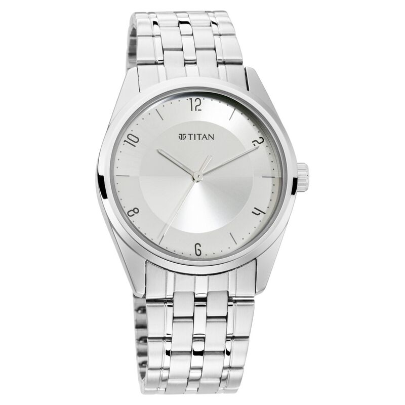 Titan Men's Timeless Charm: Men's Analog Watch With White Dial And Metal Strap
