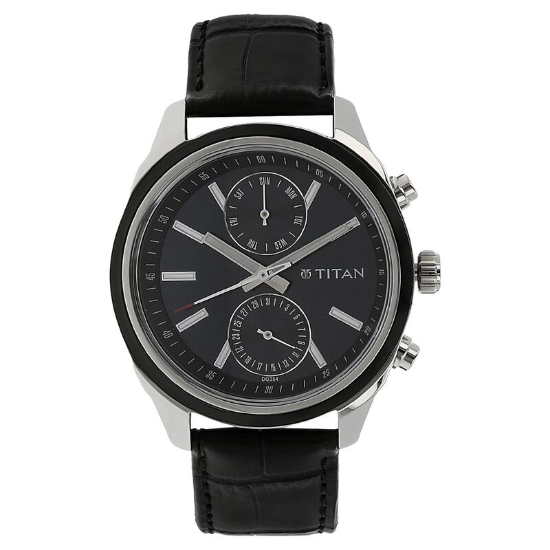 Titan Men's Minimalist Zen Watch Black: Sleek Leather Strap With Contrast Hands