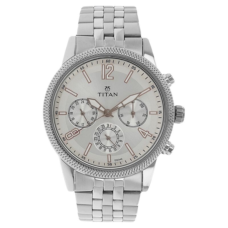 Titan Metal Silver Analog With Day And Date Stainless Steel Strap Watch For Men