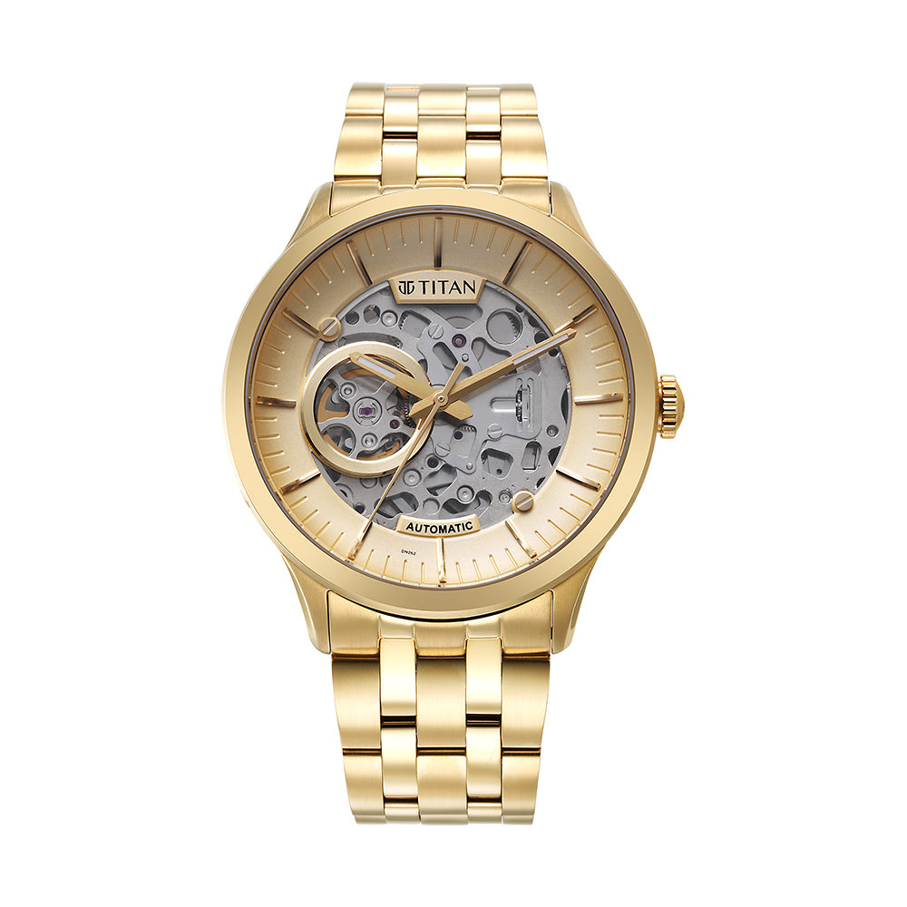 Titan Men's Timeless Style Watch: Refined Black Dial And Metal Strap
