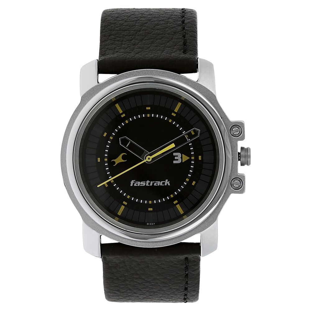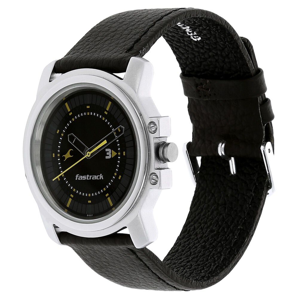 Fastrack Quartz Analog Black Dial Leather Strap Watch for Guys NS3039SL02
