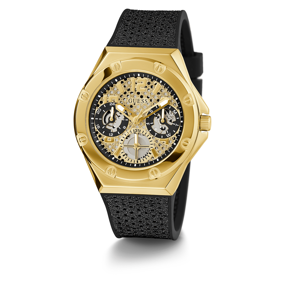 GUESS Ladies Black Gold Tone Multi-Function Watch
