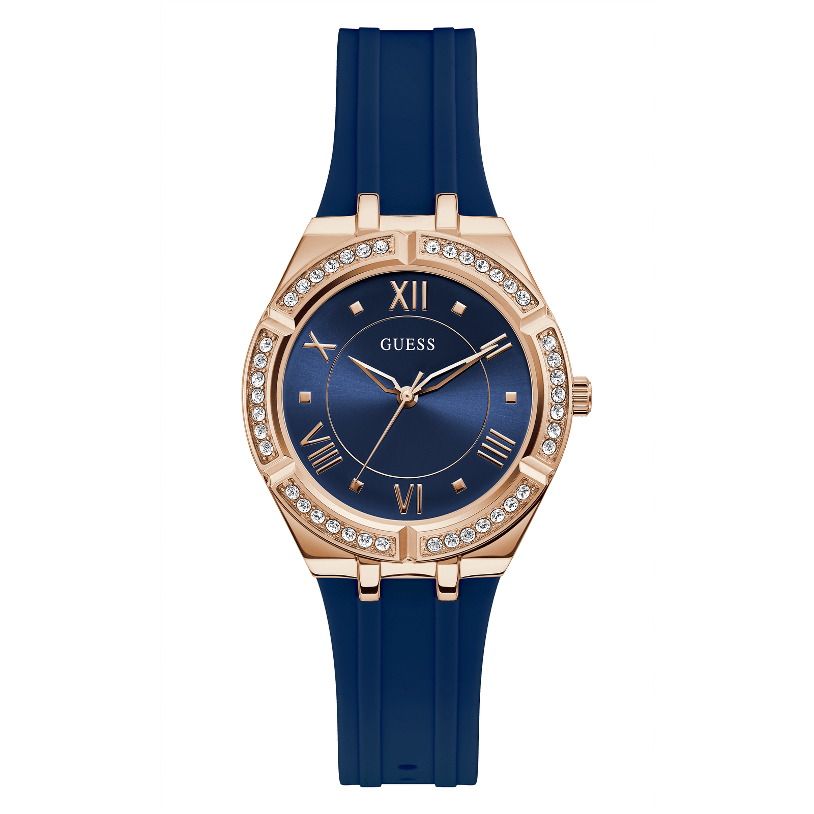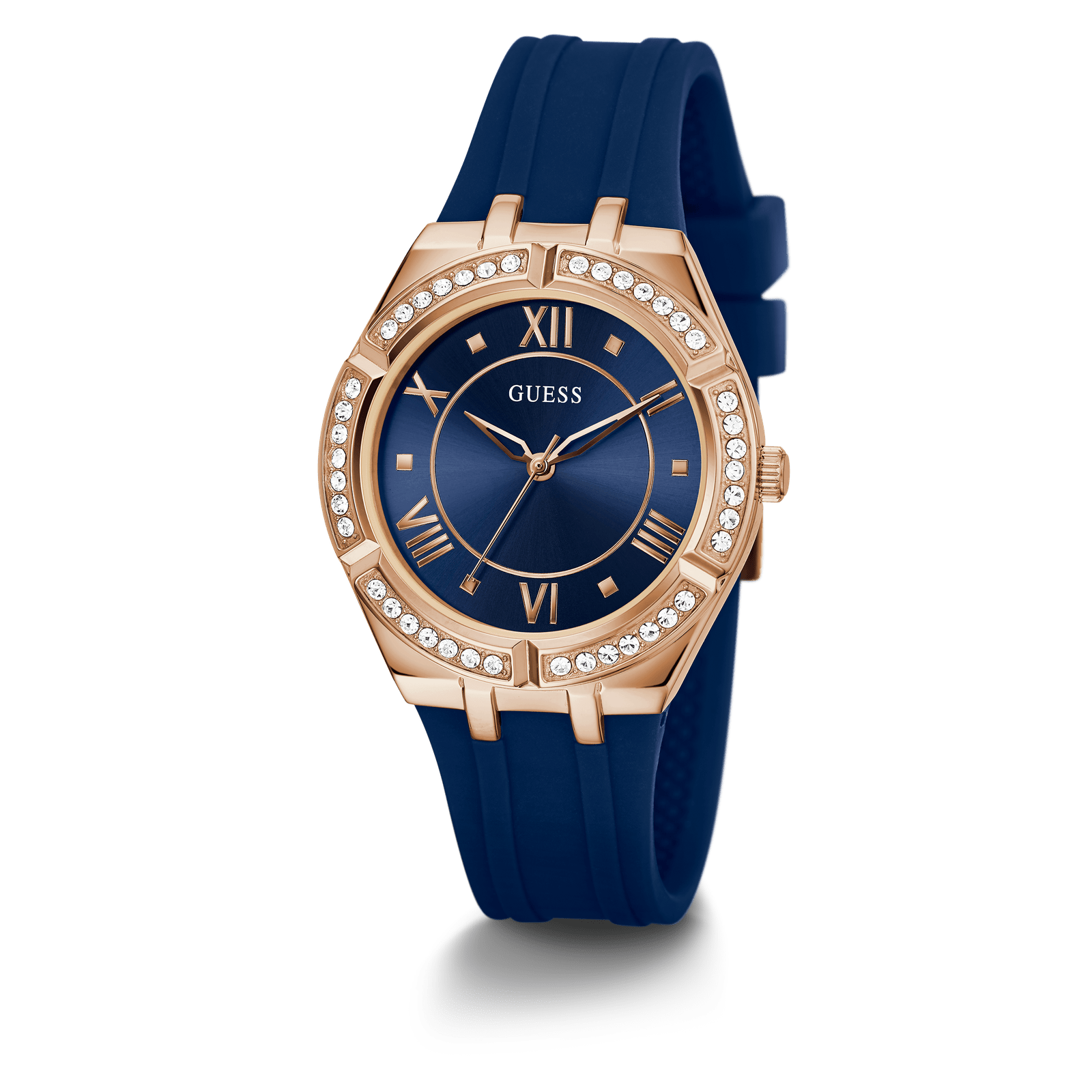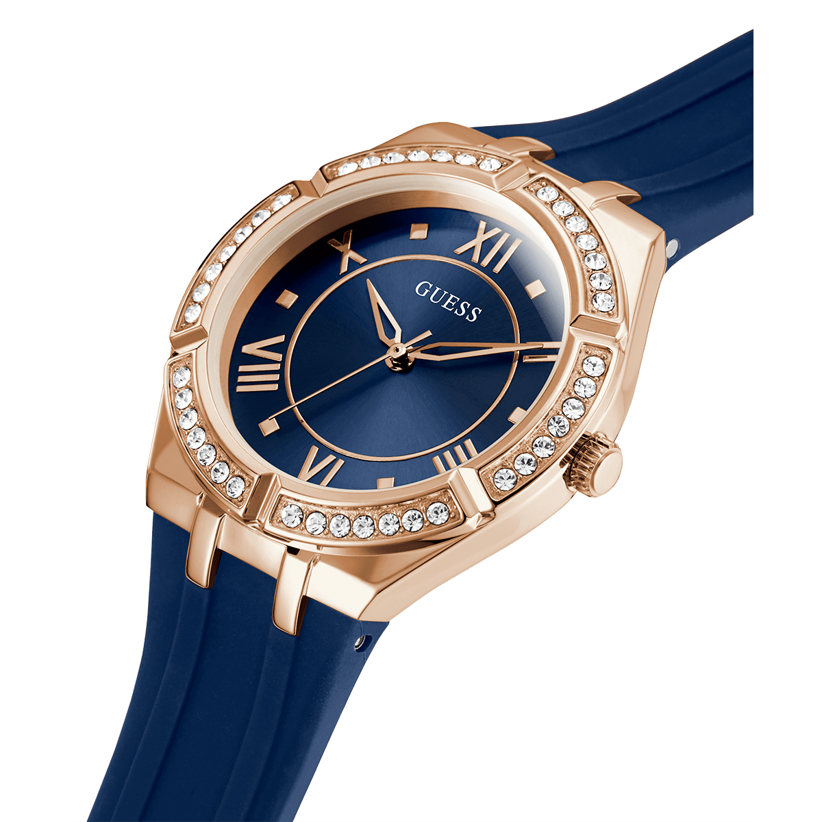 GUESS Ladies Blue Rose Gold Tone Analog Watch