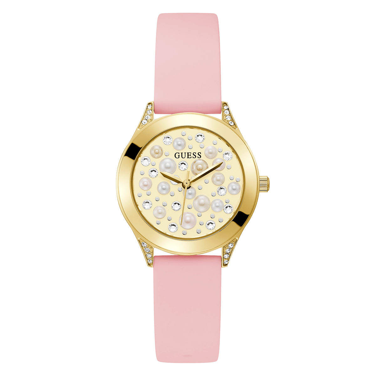 GUESS Ladies Pink Gold Tone Analog Watch