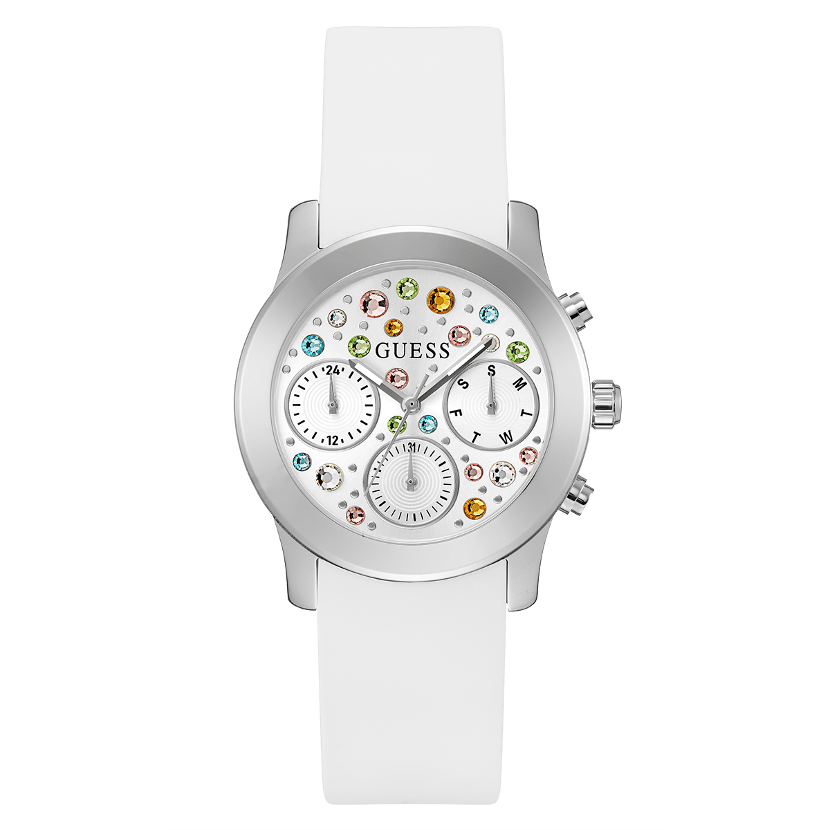 GUESS Ladies White Silver Tone Multi-Function Watch