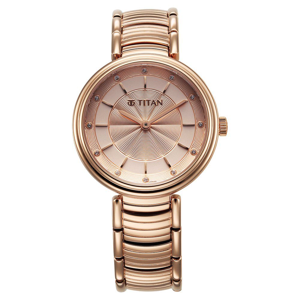 Titan Aura Quartz Analog Rose Gold Dial Rose Gold Stainless Steel Strap Watch for Women 95240WM01