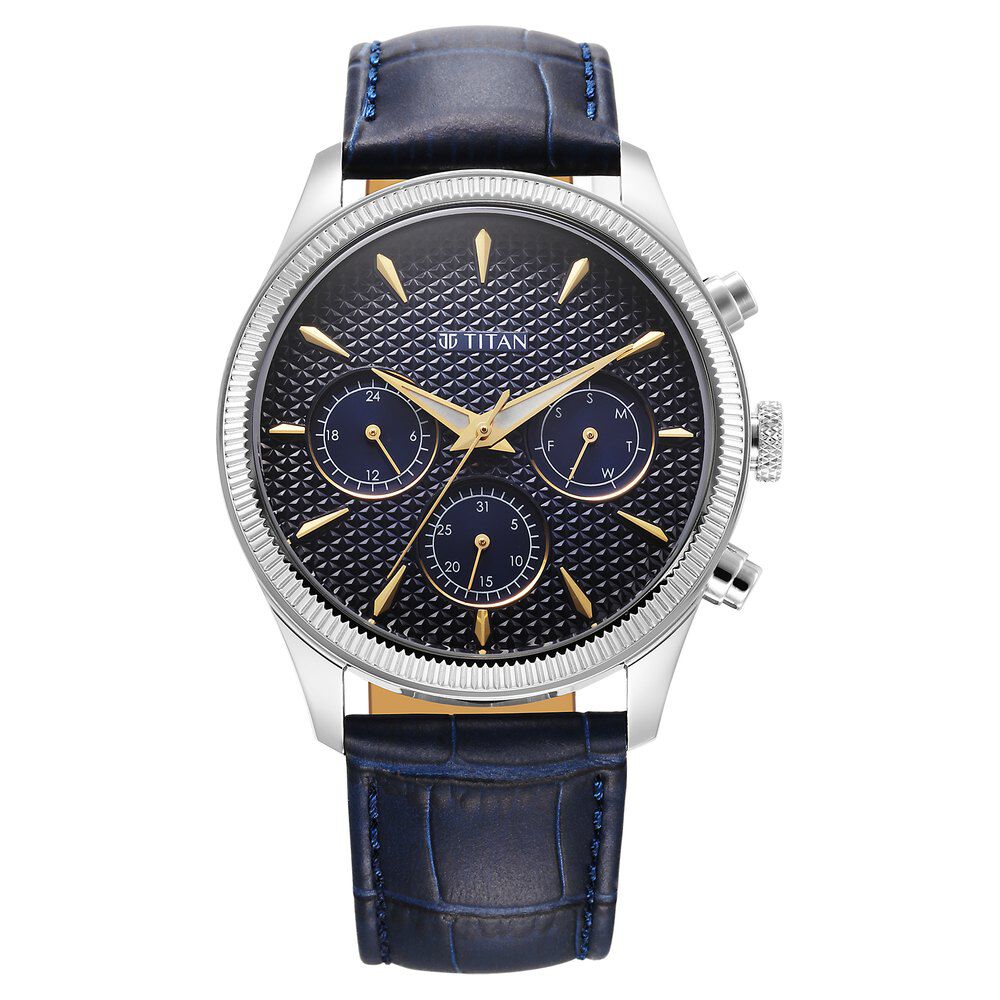 Titan Regalia Opulent Quartz Analog with Day and Date Blue Dial Blue Leather Strap Watch for Men 1805SL13