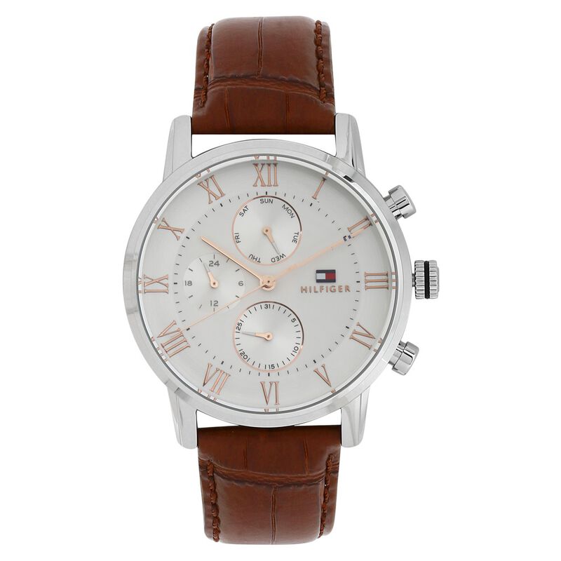 Tommy Hilfiger Quartz Multifunction Silver Dial Leather Strap Watch For Men