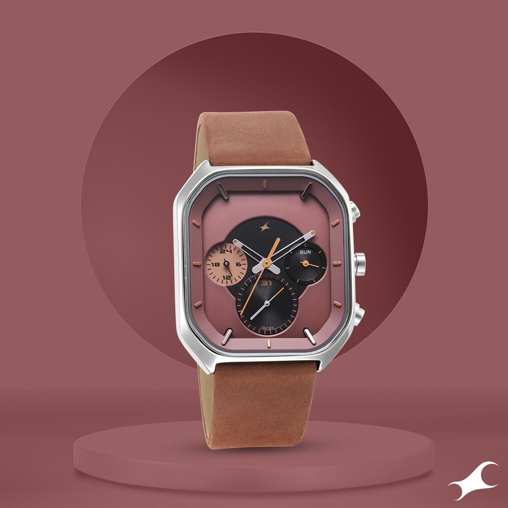 Fastrack After Dark Quartz Analog with Day and Date Brown Dial Leather Strap Watch for Guys NS3270SL01