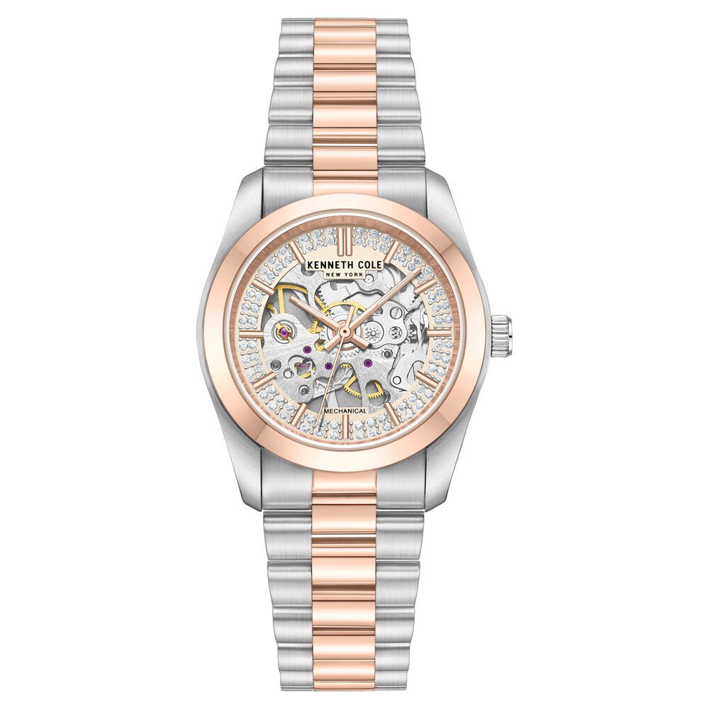 Kenneth Cole Mechanical Hand Wound Analog Mechanical Rose Gold Dial With Two Toned Stainless Steel Strap Watch For Women KCWLL0047603LD