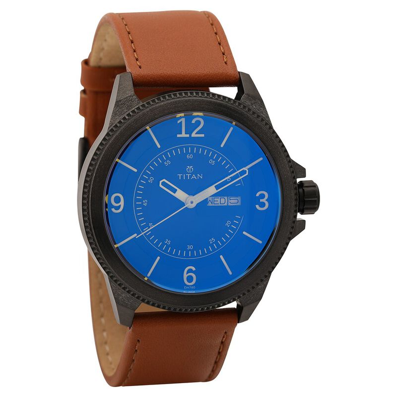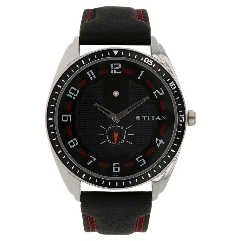 Titan Quartz Analog With Day And Date Black Dial Leather Strap Watch For Men