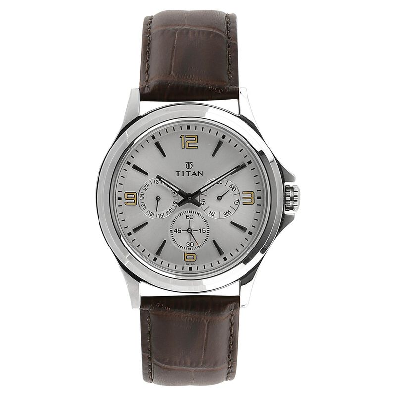 Titan Quartz Multifunction Silver Dial Leather Strap Watch For Men