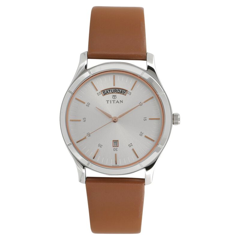 Titan Men's Urban Edge Lustrous Silver Dial Leather Watch