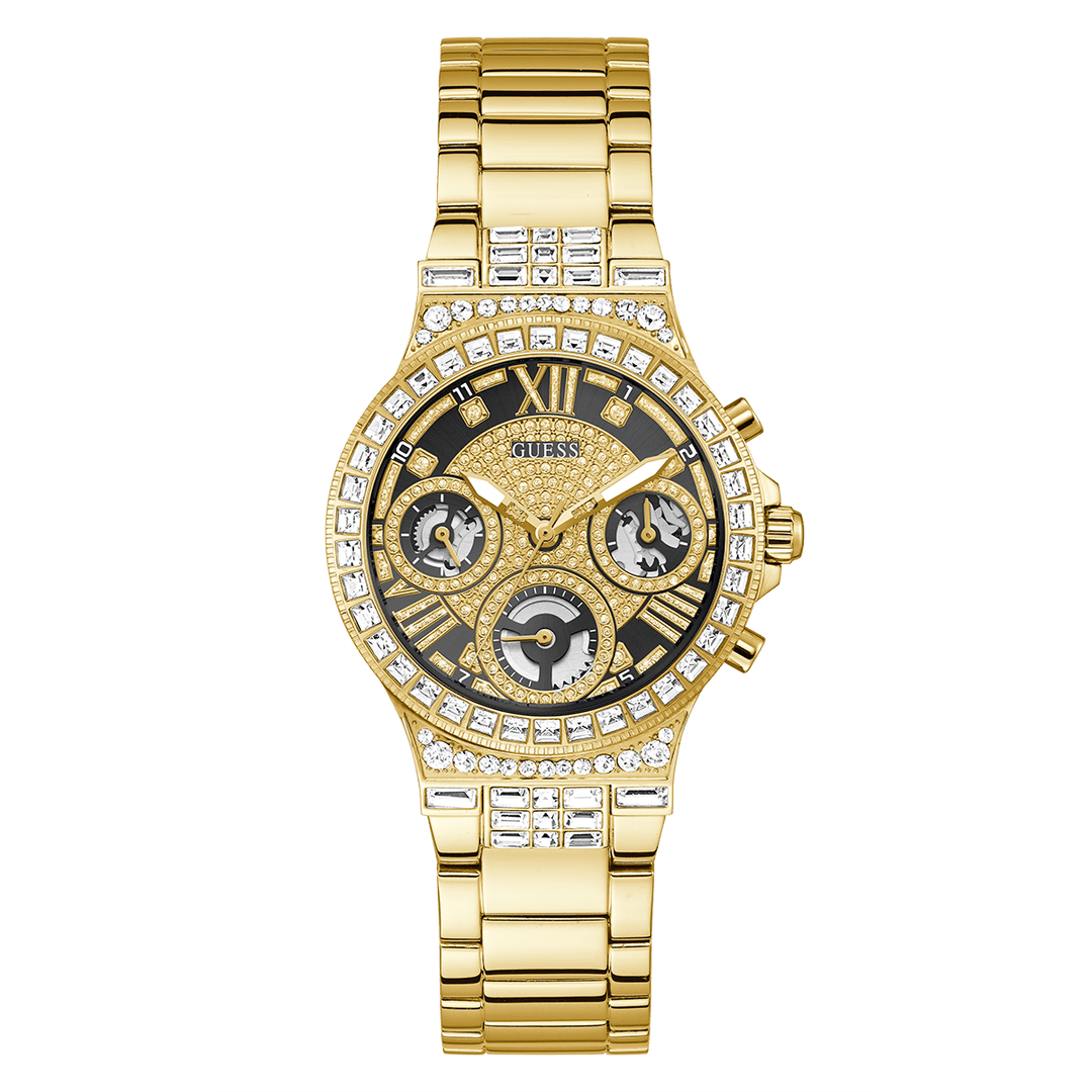 GUESS Ladies Black Gold Tone Multi-Function Watch