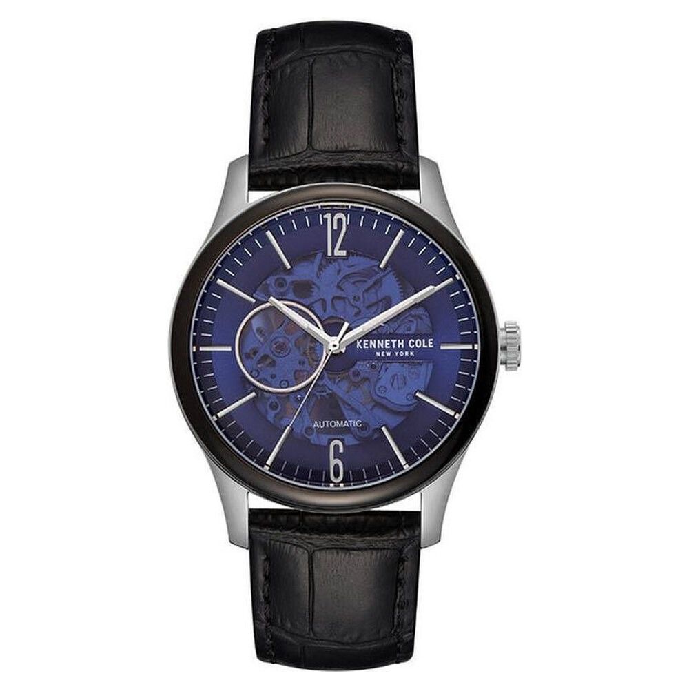 Kenneth Cole Automatic Blue Dial Leather Strap Watch for Men-NCKC50227002MN