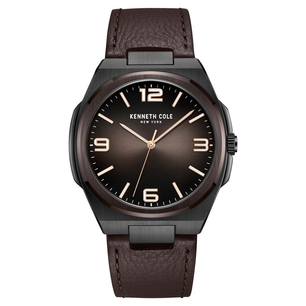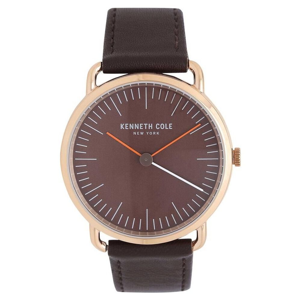 Kenneth Cole Quartz Analog Brown Dial Leather Strap Watch for Men-NDKC50777003MN