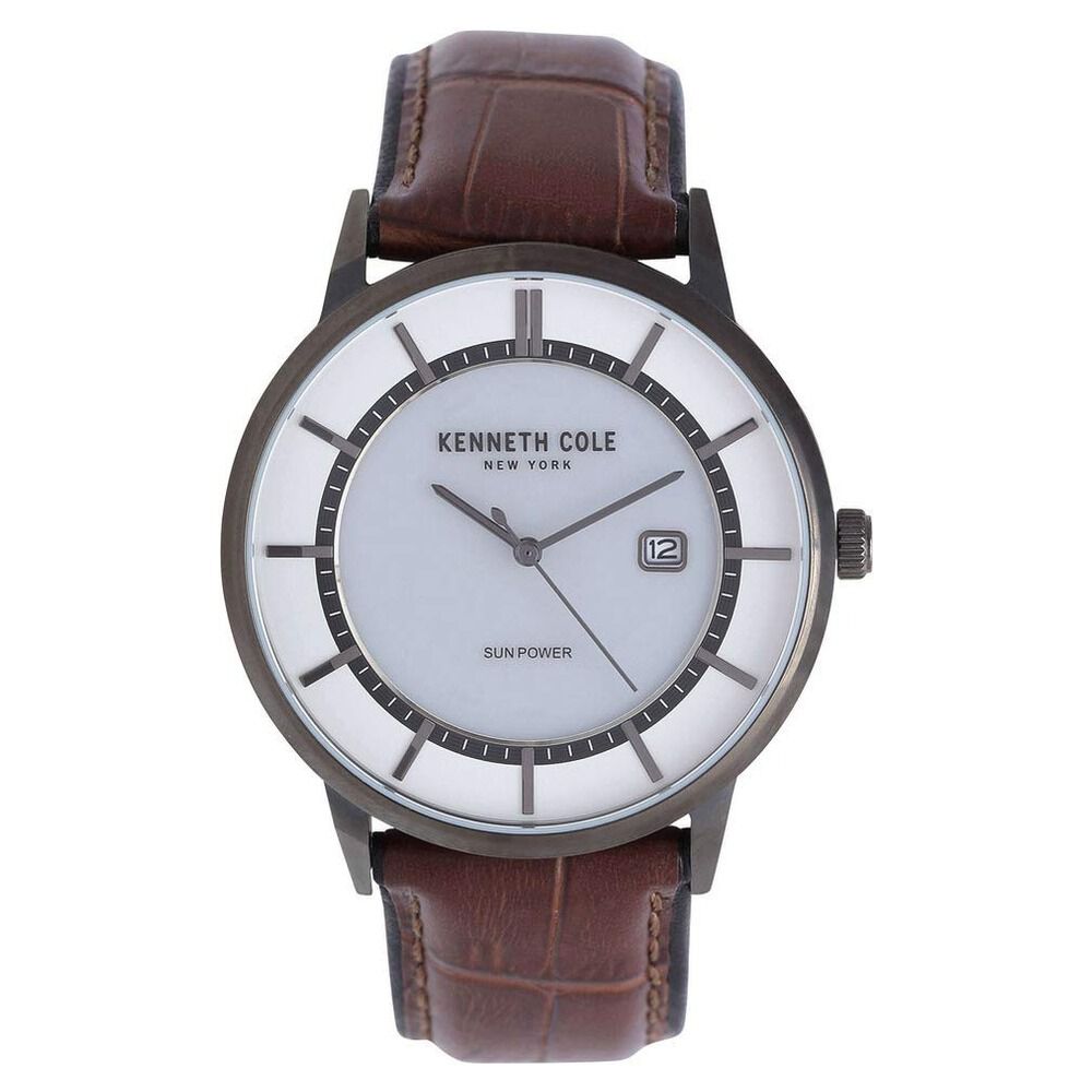 Kenneth Cole Quartz Analog Solar Silver Dial Leather Strap Watch for Men-NDKC50784001MN