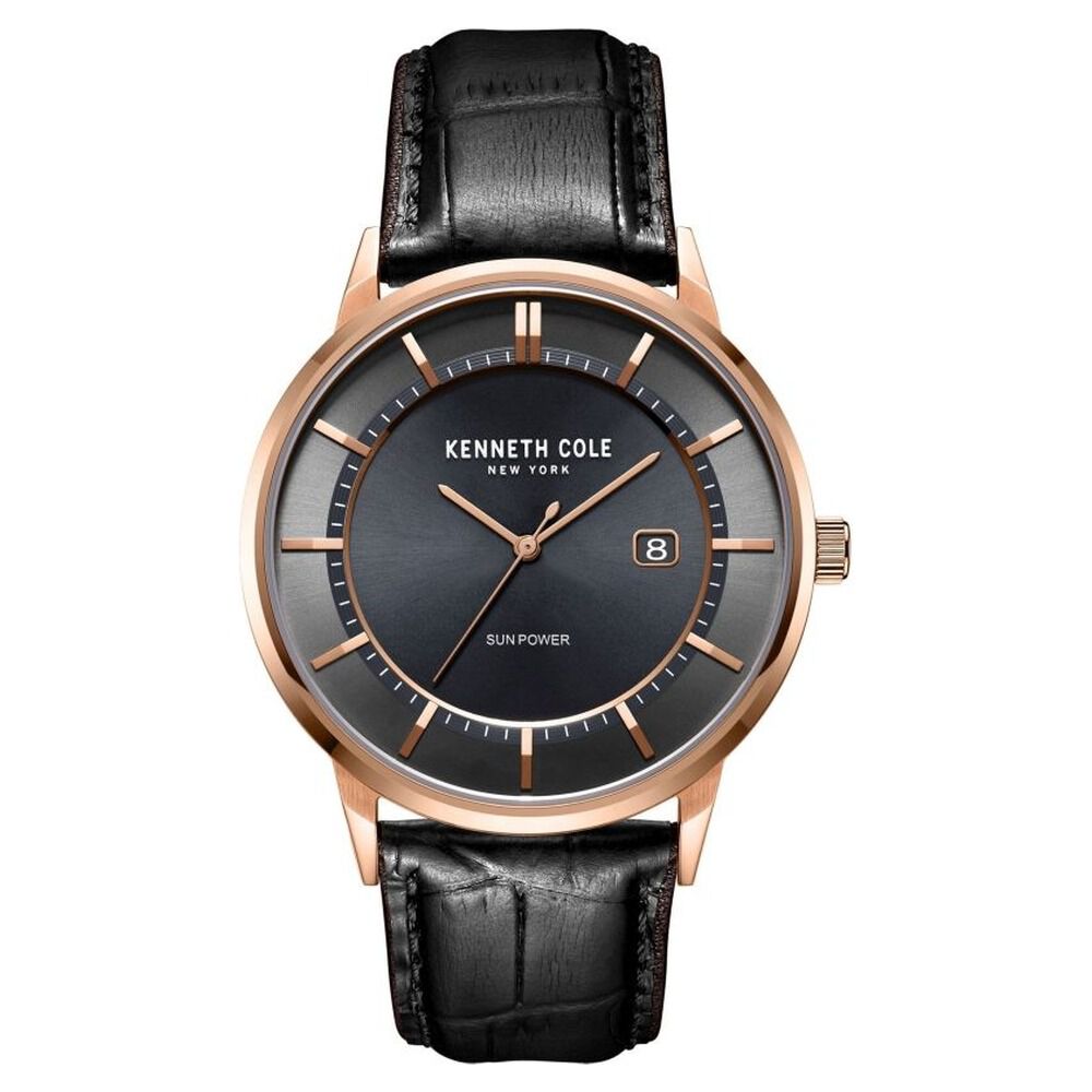 Kenneth Cole Quartz Analog Solar Grey Dial Leather Strap Watch for Men-NDKC50784004MN