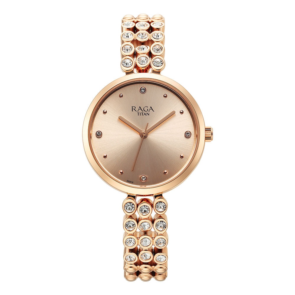 Titan Raga Chic Quartz Analog Pink Dial Metal Strap Watch for Women 2696WM01