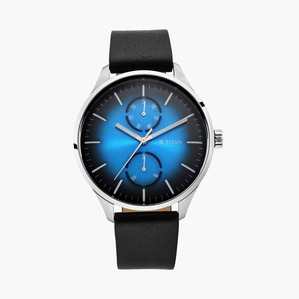 TITAN EVOKE GRADIENT BLUE DIAL BLACK LEATHER STRAP WATCH 1833SL03