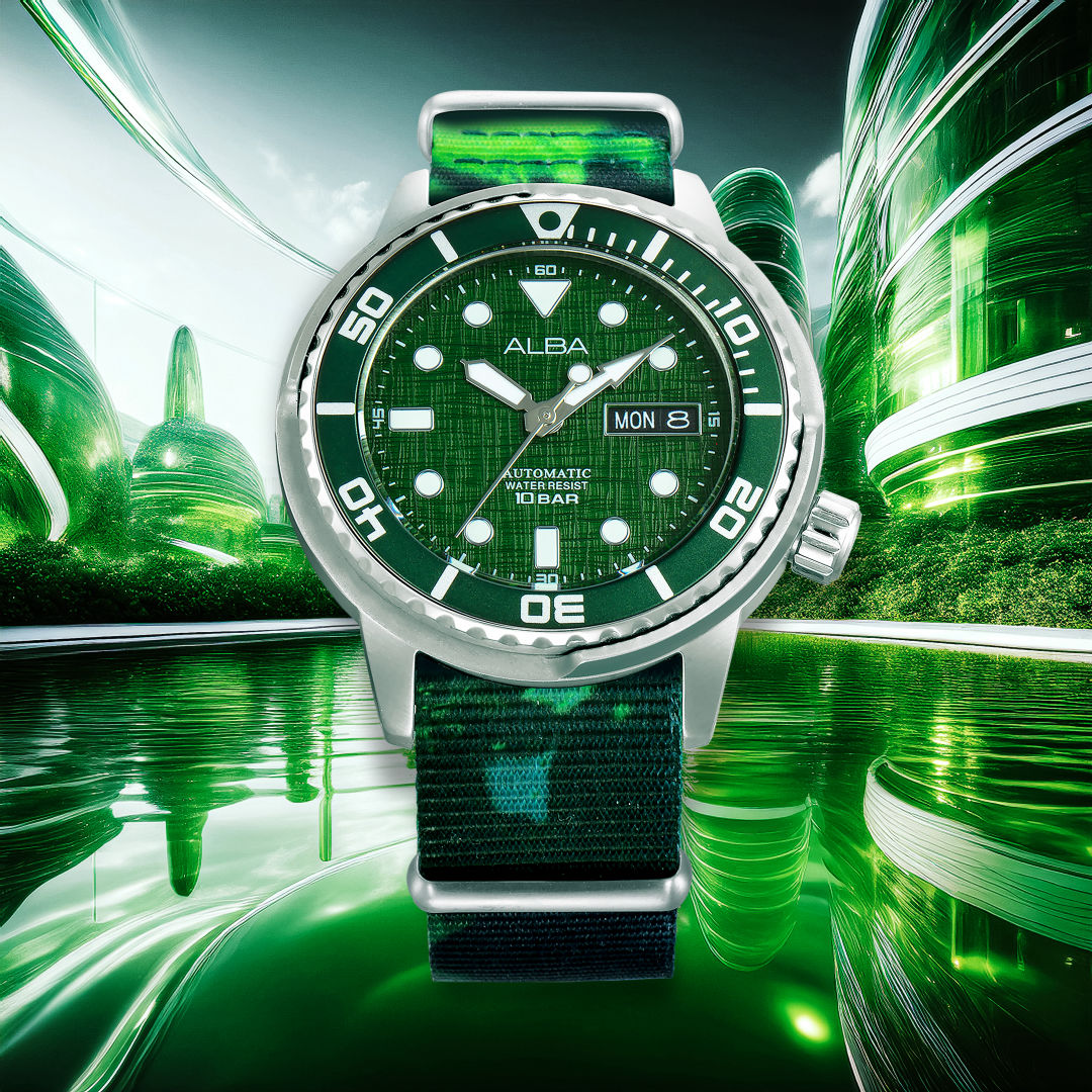 Alba AL4775X2 Green Dial Automatic Dual‑Strap Men’s Stainless Steel Watch