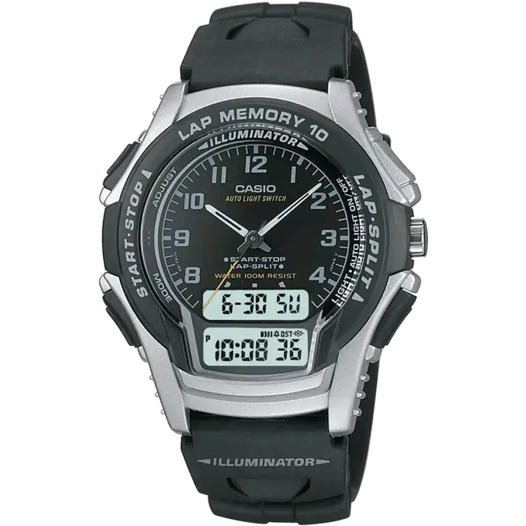 - Energy: Alarm (S) Auto Calendar Chronograph/Stopwatch Countdown Timer Lap Memory Light Function Moon Data / Tide Graph