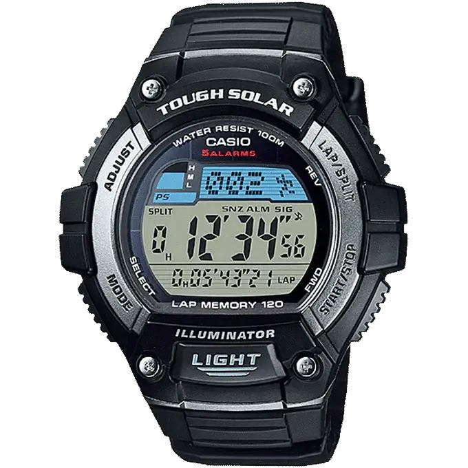 - Energy: Alarm (S) Auto Calendar Chronograph/Stopwatch Countdown Timer Lap Memory Light Function Solar Powered World Time