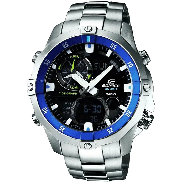 - Energy: Alarm (S) Auto Calendar Chronograph/Stopwatch Countdown Timer Light Function Magnetic Resistant Moon Data / Tide Graph Thermometer World Time