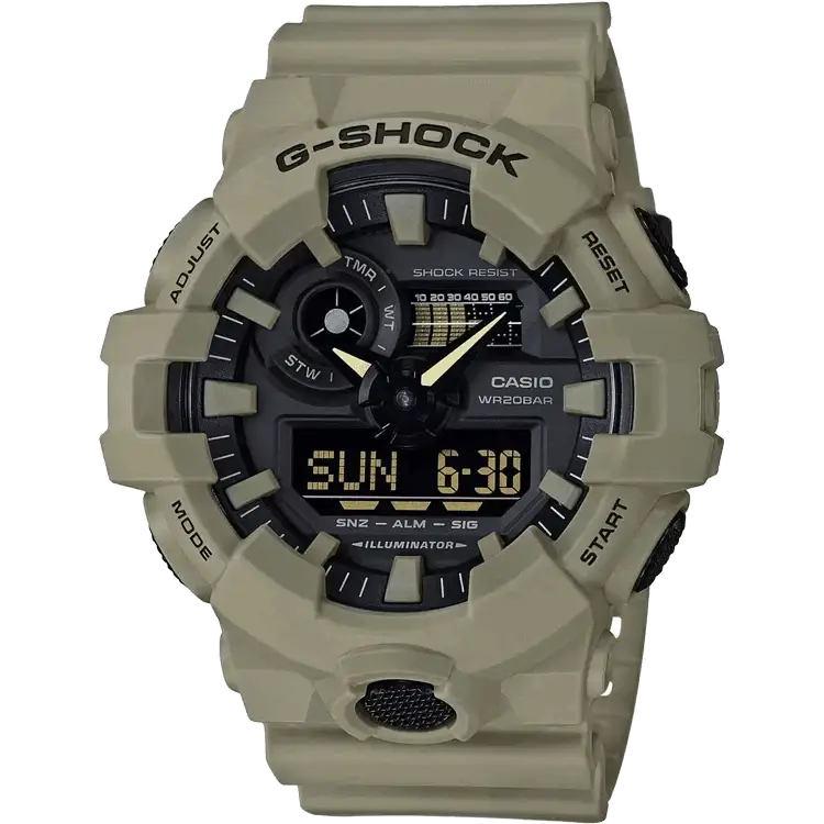 - Energy: Alarm (S) Auto Calendar Chronograph/Stopwatch Countdown Timer Light Function Shock Resistant World Time