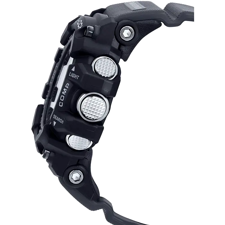 - Energy: Alarm (S) Auto Calendar Chronograph/Stopwatch Compass Countdown Timer Light Function Shock Resistant Thermometer World Time