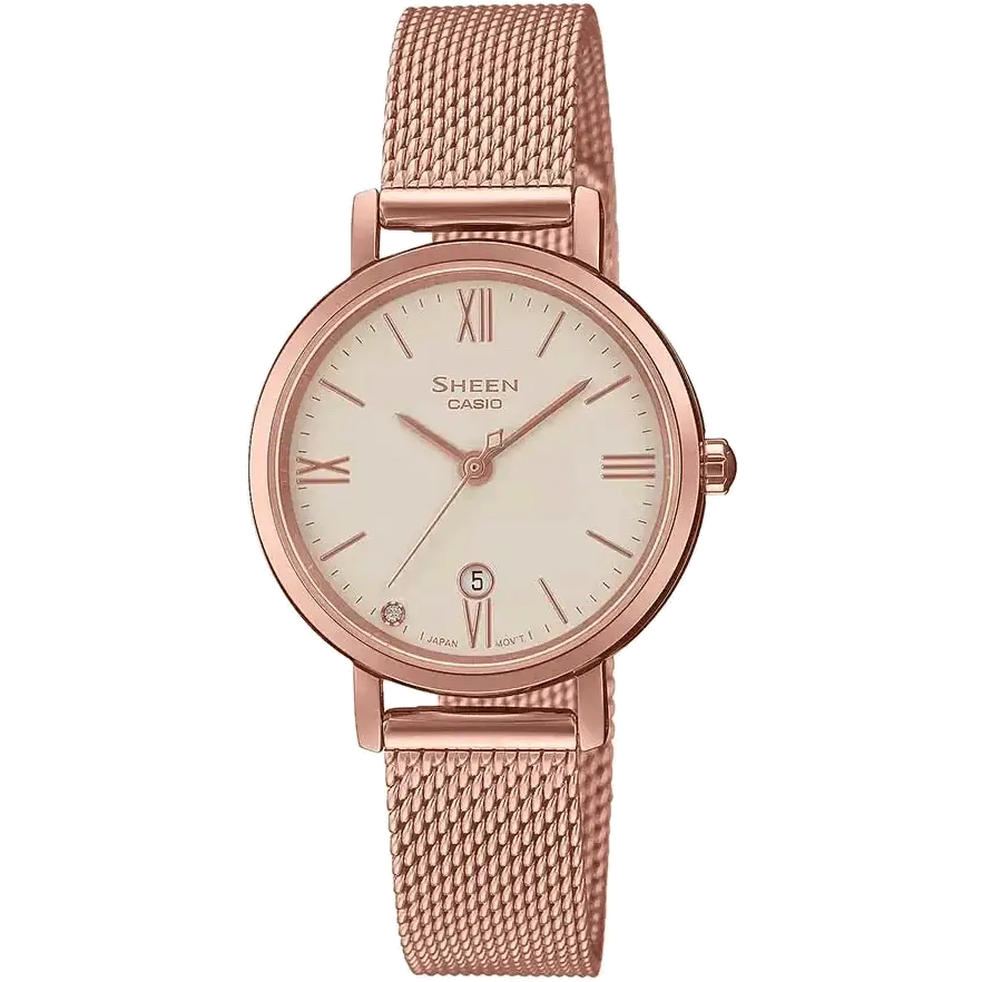 - Energy: 50-Meter Water Resistance Pink Gold Ion Plated Case Sapphire Crystal Slim Case