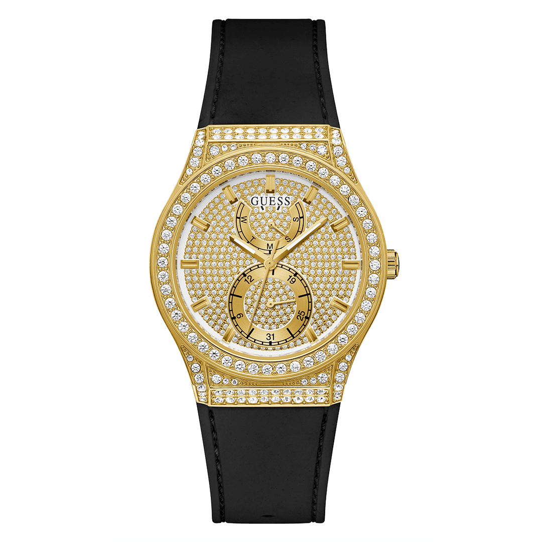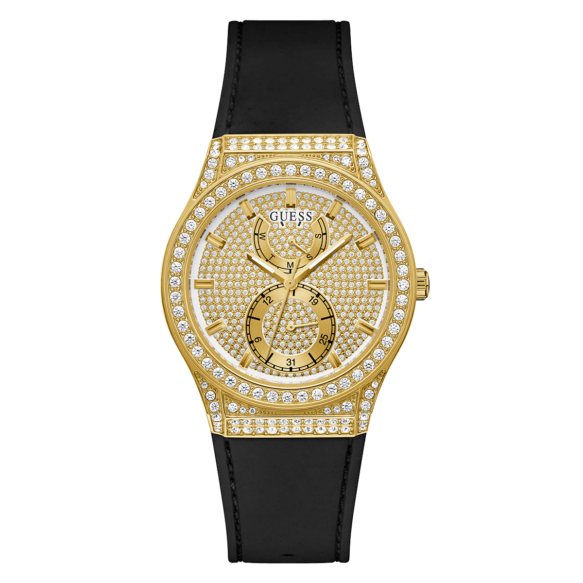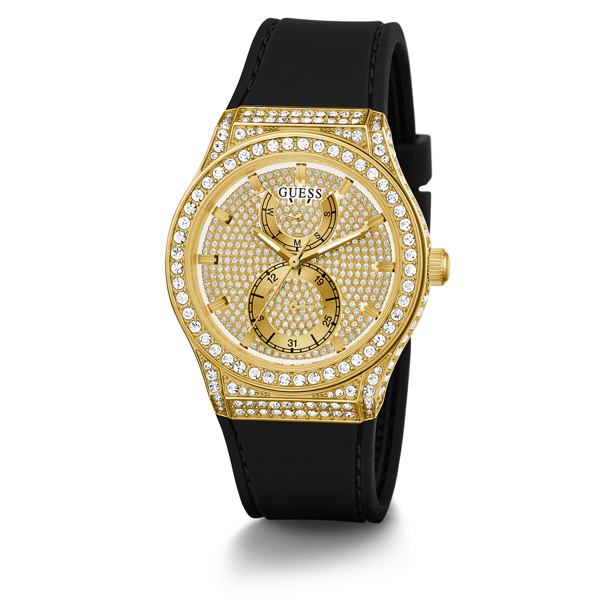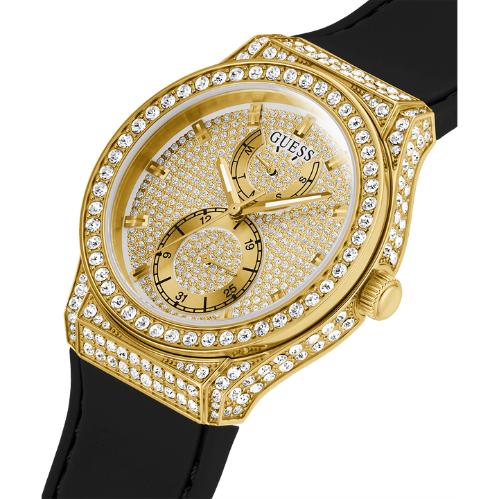 GUESS Ladies Black Gold Tone Multi-Function Watch