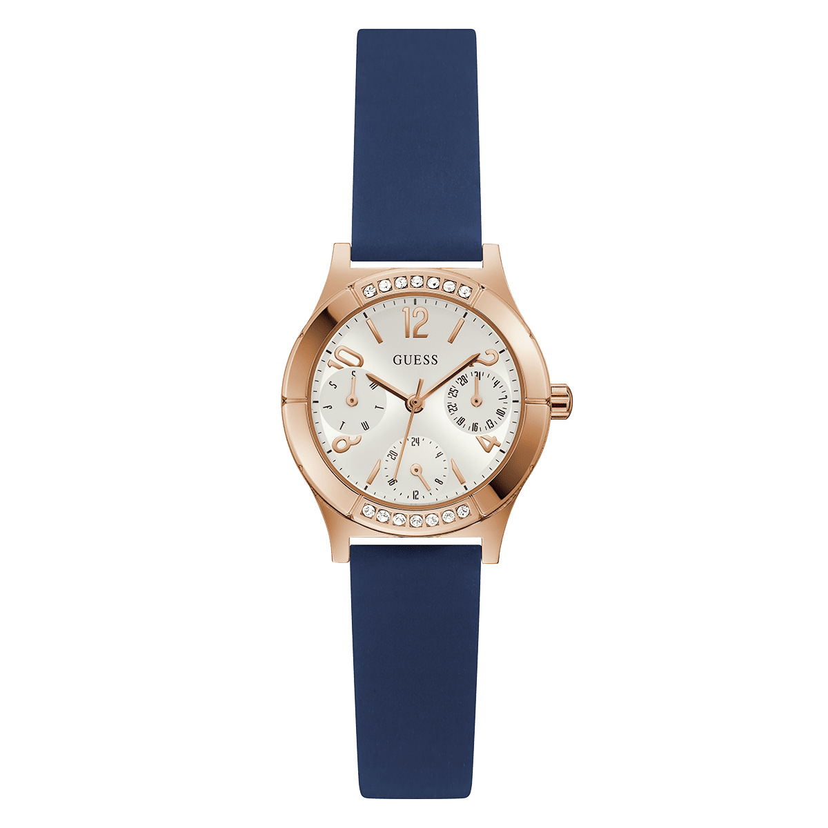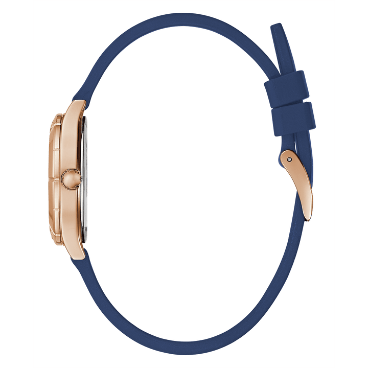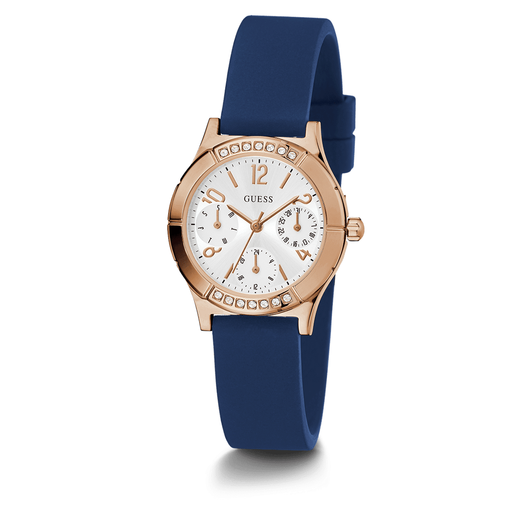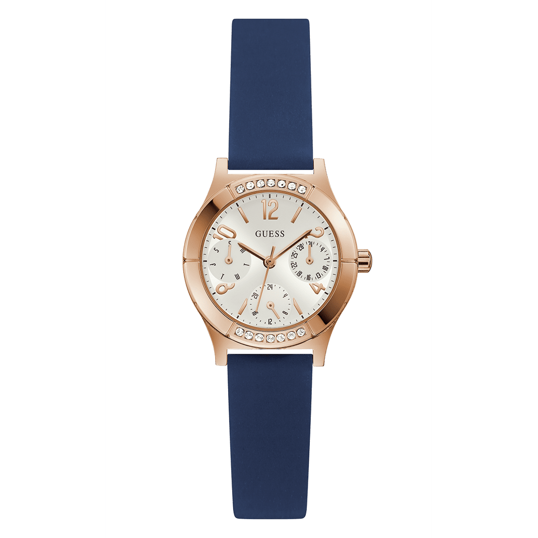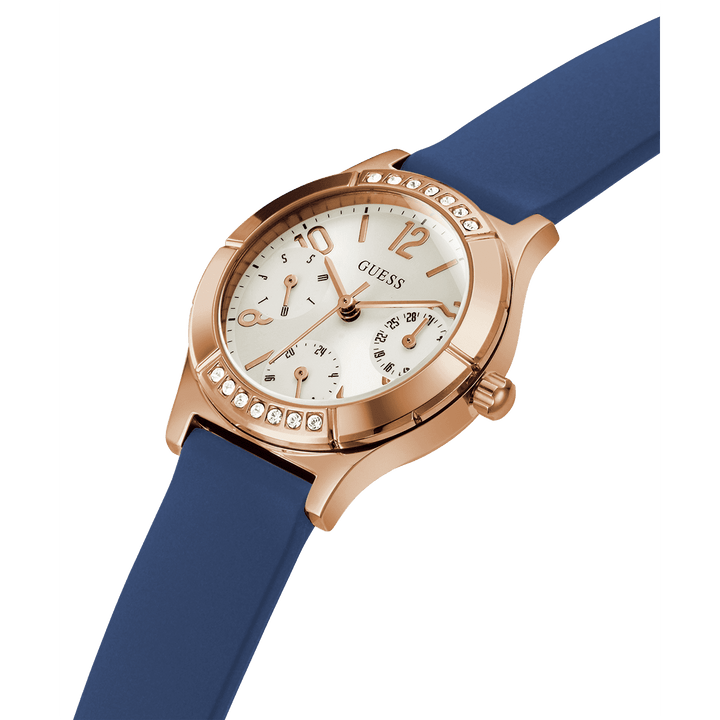 GUESS Ladies Blue Rose Gold Tone Multi-Function Watch