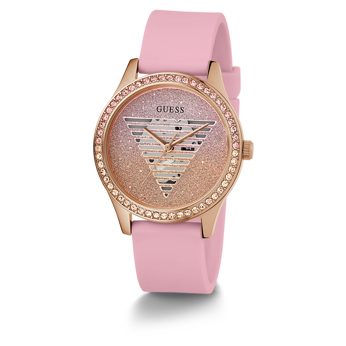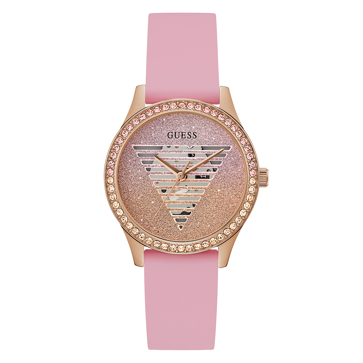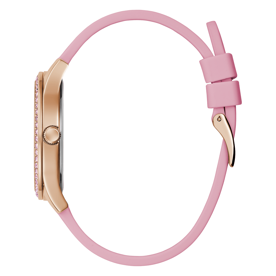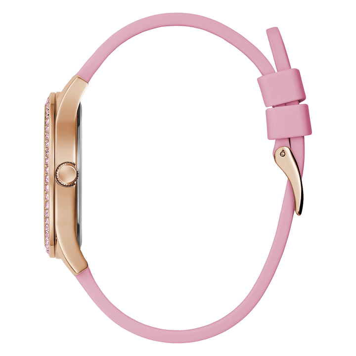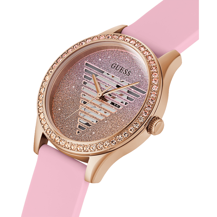 GUESS Ladies Pink Rose Gold Tone Analog Watch