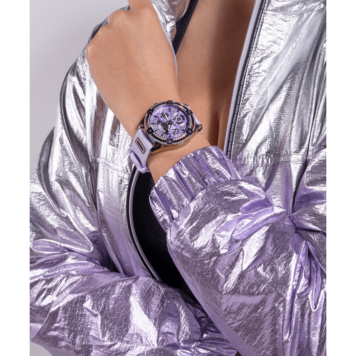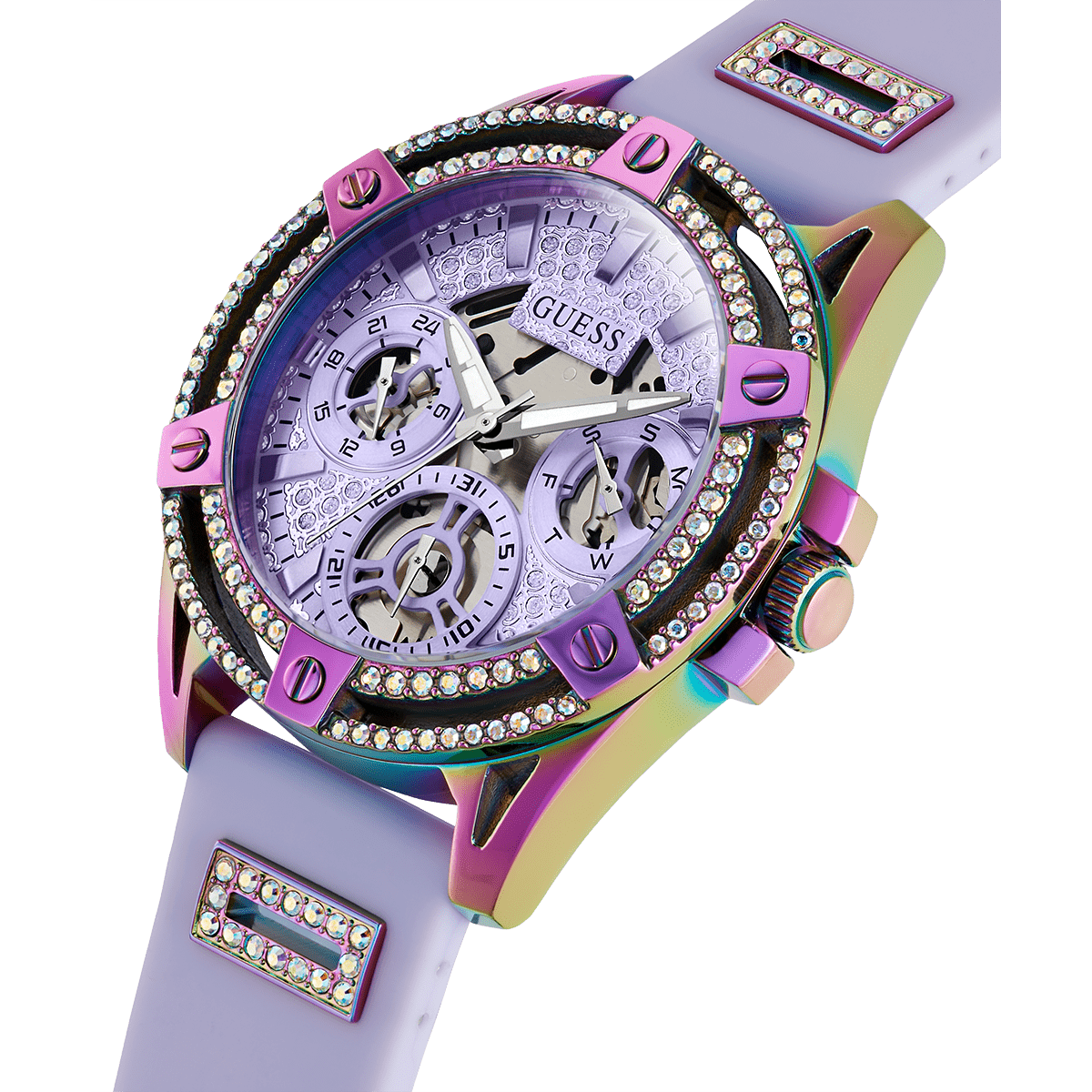 GUESS Ladies Purple Iridescent Multi-Function Watch