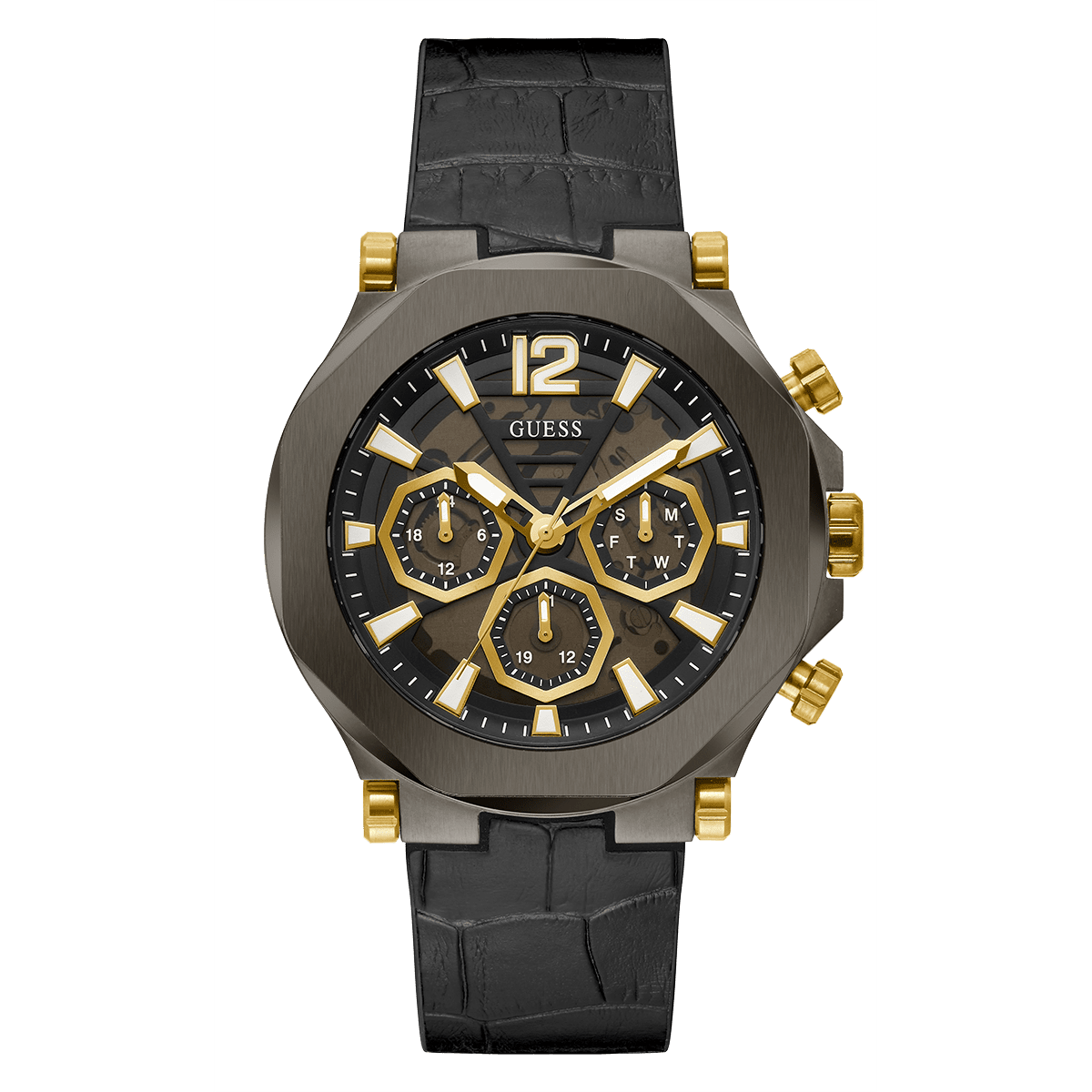 GUESS Mens Black Gunmetal Multi-Function Watch