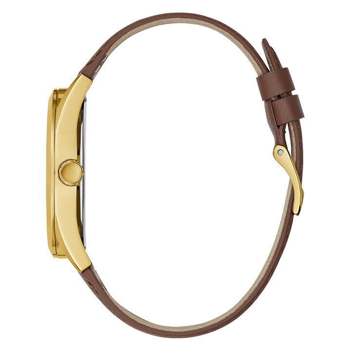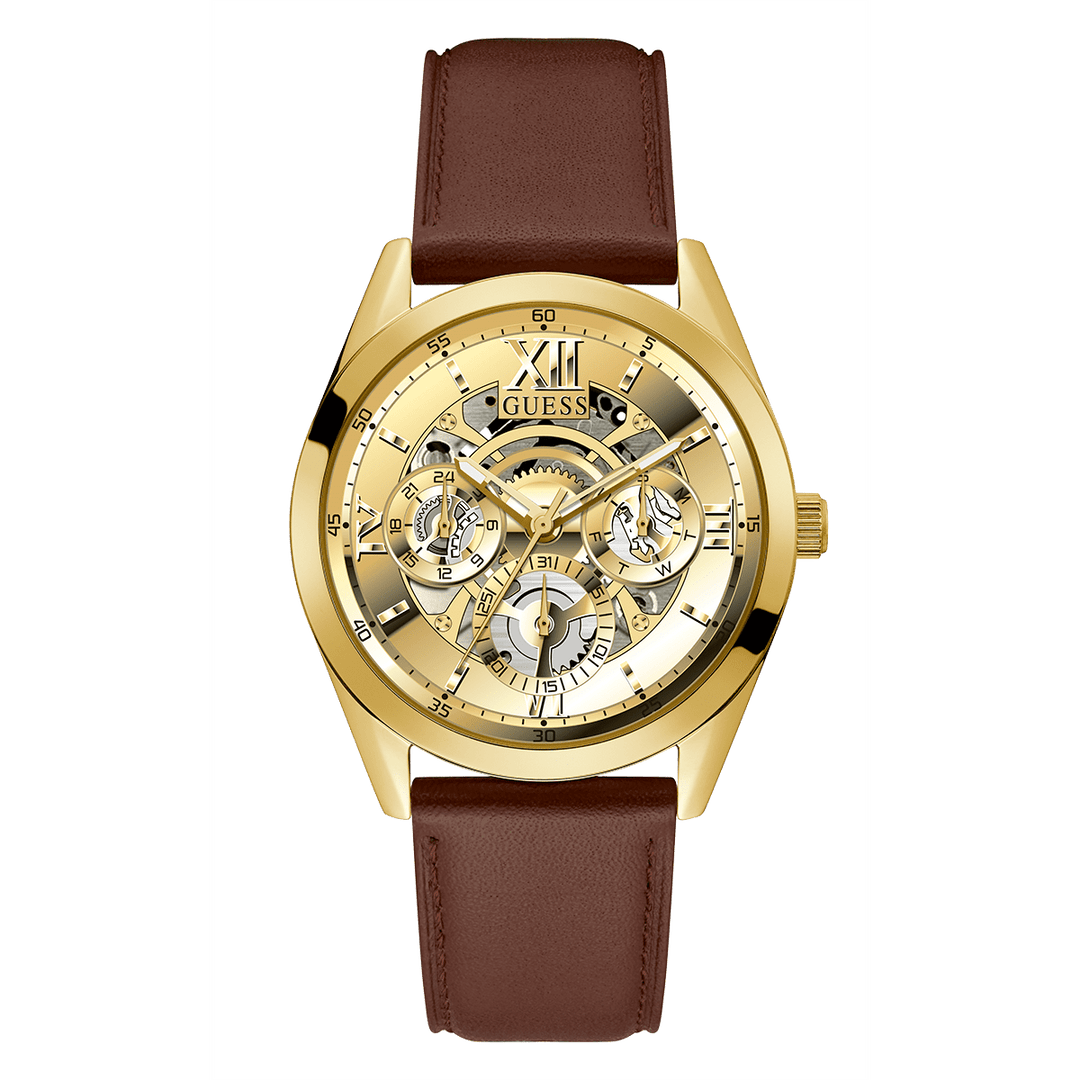 GUESS Mens Chocolate Brown Gold Tone Multi-Function Watch