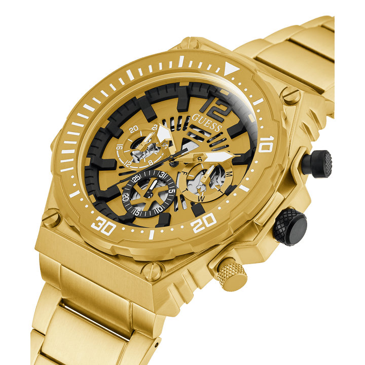 GUESS Mens Gold Tone Multi-Function Watch