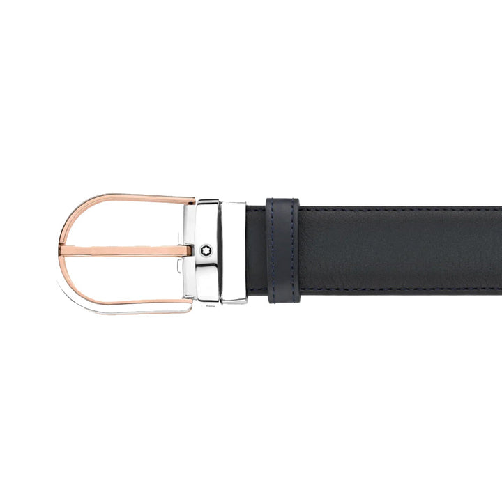 Mont Blanc 129438 Horseshoe Buckle Blue 35 Mm Leather Belt